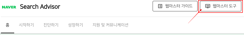 서비스로 들어와 우측 상단에 웹마스터 도구