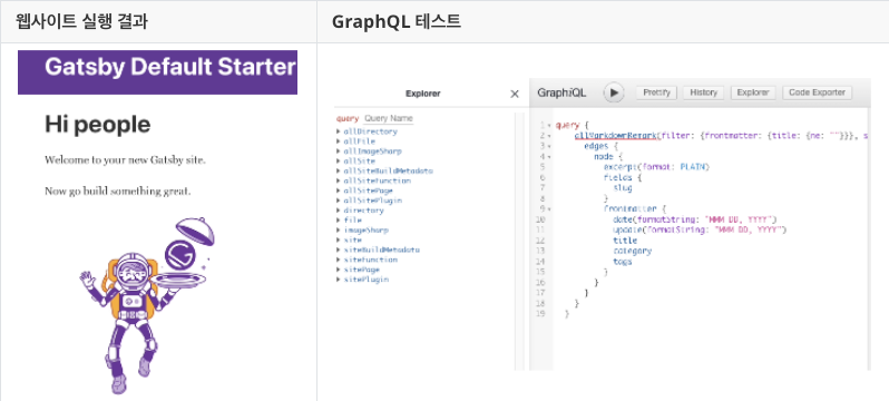 gatsby develop을 실행하면, 2개의 서비스에 접속할 수 있다.