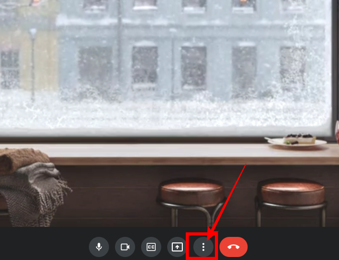 구글 미트의 회의실에 입장하면 아래와 같이 하단에 More버튼 (세로로 점세개)을 확인 할 수 있다.