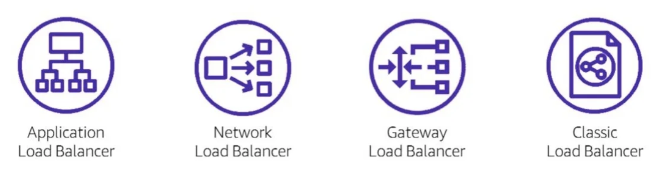Amazon ELB 기본 구조 (좌), Amazon Load Balancer의 유형(우). Application Load Balancer (L7), Network Load Balancer (L4), Classic Load Balancer (L4/L7이지만 과거 유지 버전). 자세한 내용은 https://aws.amazon.com/elasticloadbalancing 참조.