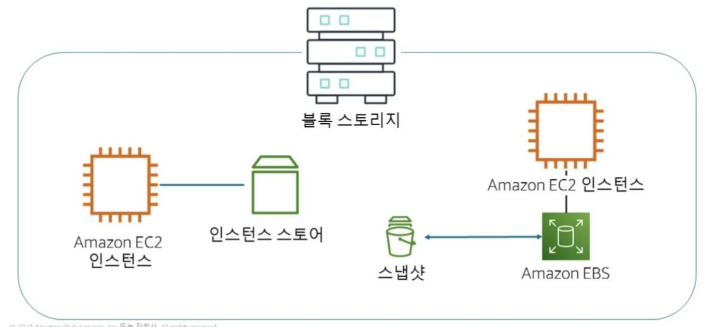 AWS Storage : 인스턴스 스토어, EBS (좌), S3 (우)