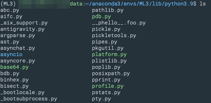 그렇다면, bin/외에 별도로 설치한 개별 패키지들은 어디에 위치해 있는 것일까? 가상환경의 rootdir 아래를 잘 살펴보면, lib/python3.x 위치를 살펴보자. 아래와 같이 `conda install` 로 설치된 패키지들이 .py 또는 라이브러리 형태로 저장되어 있다.