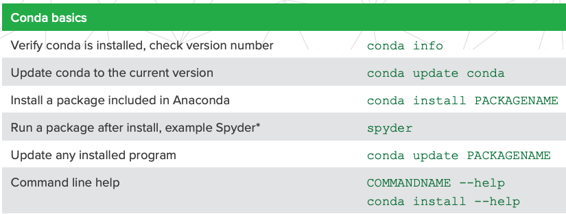 다음은 conda 공식 홈에서 제공하고 있는 conda cheat sheet이다.