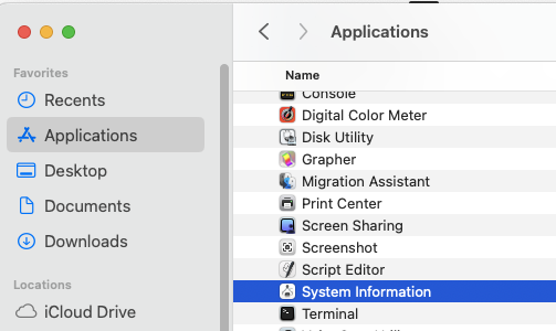 첫번째로 해야할 일은, mac > Finder > Application > Utility > System Information 을 열어서 USB자체를 인식하는지 여부를 확인해 보아야 합니다.