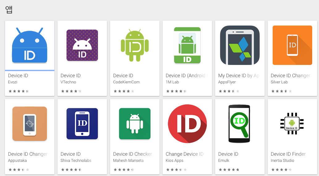 Play Store에 검색해 보면, 다음과 같은 Device ID 확인 앱들이 있습니다. (미리 말씀 드리면, 아~~~무 의미 없습니다.)
