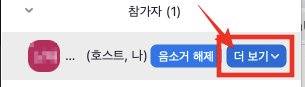 3) 참가자 리스트중 본인 이름에 해당하는 칸에 마우스를 맞추거나, 클릭하면, "더보기" 버튼을 찾을 수 있다.